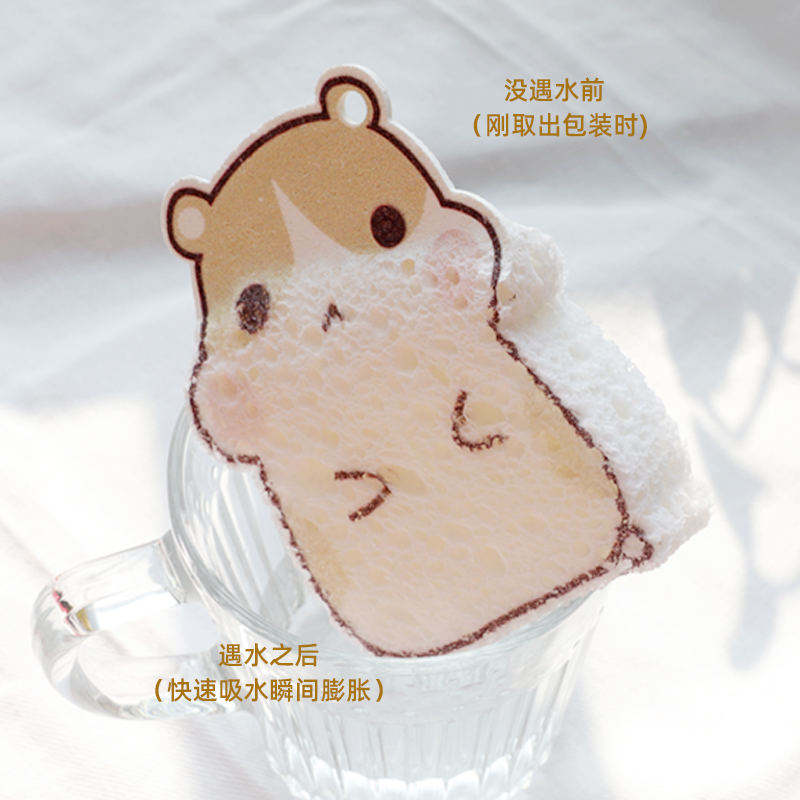 Deixe-me mostrar outra forma de esponja de madeira para filhotes, a esponja de celulose comprimida. É produzido a partir de polpa de madeira de algodão após prensagem a quente em alta temperatura. A esponja de celulose comprimida não só mantém todas as vantagens da esponja de algodão com polpa de madeira,como, após a prensagem, reduzimos o volume da esponja para reduzir a taxa de envio, além de podermos imprimir logotipos ou outros designs na superfície. Isso torna a limpeza mais engraçada.