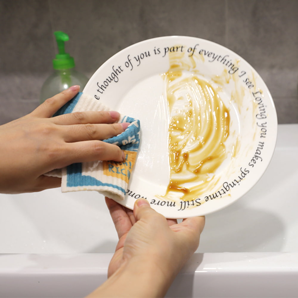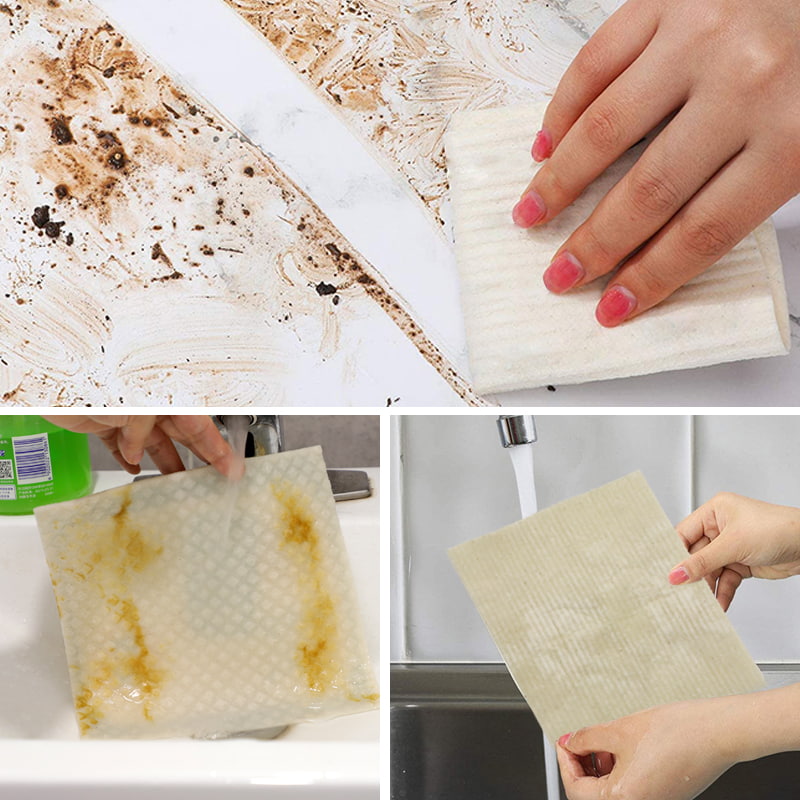Fácil de limpar: Em comparação com a estrutura porosa das esponjas tradicionais, que é propensa a acumular sujeira e fuligem, as fibras de algodão da polpa de madeira têm menos probabilidade de reter manchas e odores.